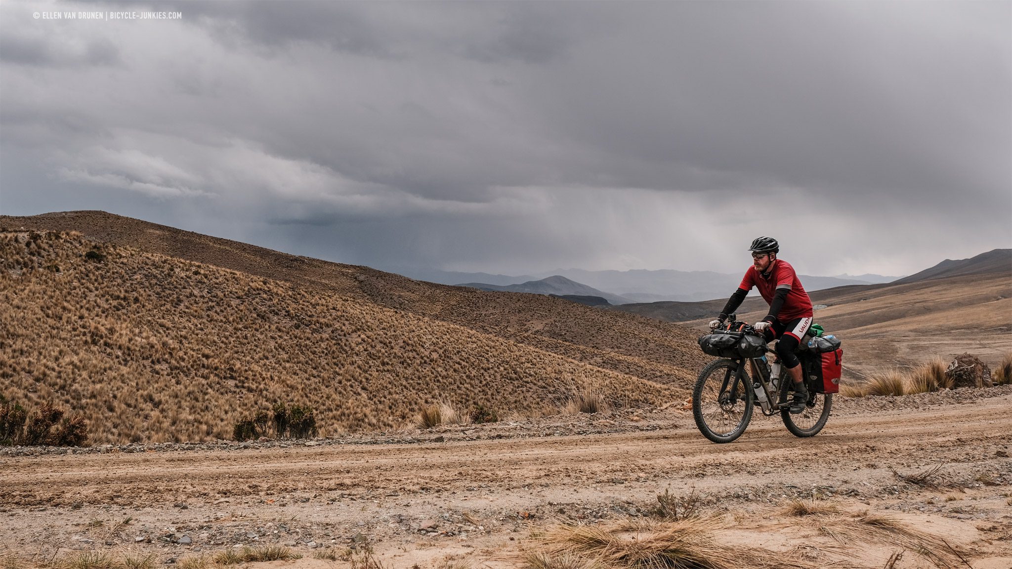Again, clouds are rolling in as we leave Tambo del Sal to ride towards another pass at 4427 meter. It’s getting dark, but we manage to keep it dry.